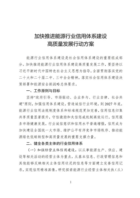 《方案》明確,到2027年底,能源行業(yè)將建成一套更加完善的信用法規(guī)制度體系和標準規(guī)范,實現(xiàn)信用信息歸集共享質(zhì)量的顯著提升,并建立起高效運行的守信激勵和失信懲戒機制。同時,信用服務市場將健康發(fā)展,全行業(yè)誠信意識和信用水平普遍增強,最終使信用成為加快建設全國統(tǒng)一大市場、維護公平有序競爭市場秩序、推動能源綠色低碳轉(zhuǎn)型和高質(zhì)量發(fā)展的重要支撐力量。