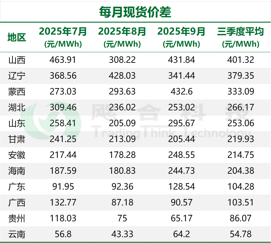 表1:2025年三季度不同省份現(xiàn)貨價(jià)差對(duì)比分析