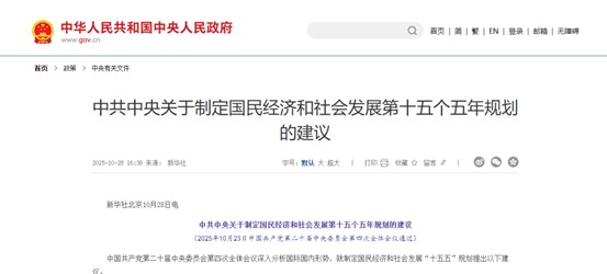 中國(guó)儲(chǔ)能網(wǎng)訊:10月28日,《中共中央關(guān)于制定國(guó)民經(jīng)濟(jì)和社會(huì)發(fā)展第十五個(gè)五年規(guī)劃的建議》(以下簡(jiǎn)稱“建議”)正式發(fā)布。