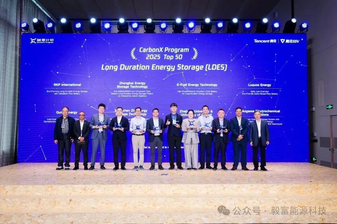 今天(10月29日)上午,由騰訊發(fā)起的全球性「碳尋計劃2.0」在深圳舉辦TOP50頒獎典禮,來自55個國家和地區(qū)的660個項目參與競選,毅富能源憑借全釩液流電池儲能系統(tǒng)技術(shù)解決方案,從全球數(shù)百個創(chuàng)新項目中脫穎而出,成功入選全球TOP50!
