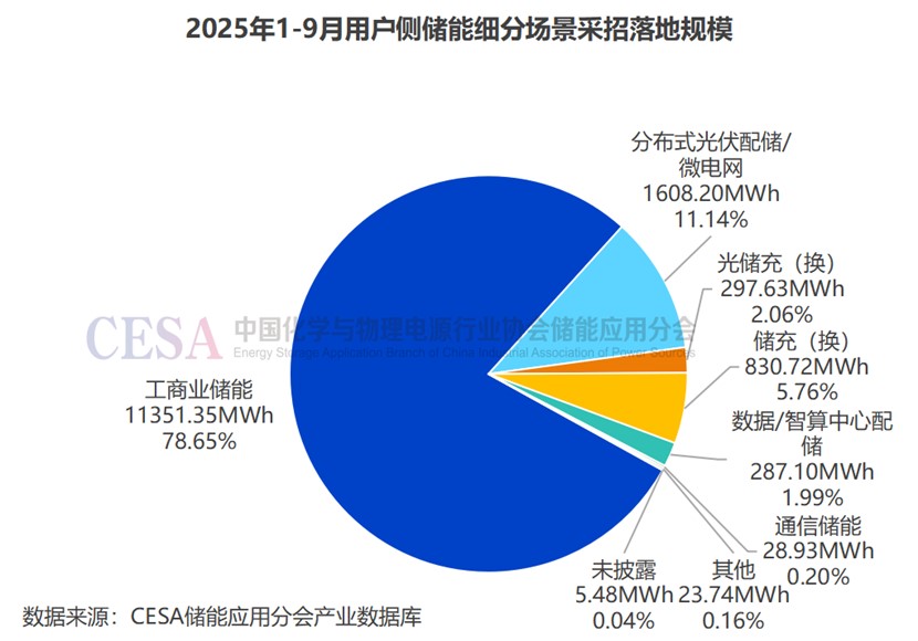具體應用場景來看,單獨配置的工商業(yè)儲能項目采招落地規(guī)模達4.61GW/11.35GWh,占用戶側儲能的82.9%(功率)/78.65%(容量),是用戶側儲能市場的主要力量,大型企業(yè)和工業(yè)園區(qū)對工商業(yè)儲能的需求持續(xù)穩(wěn)定。