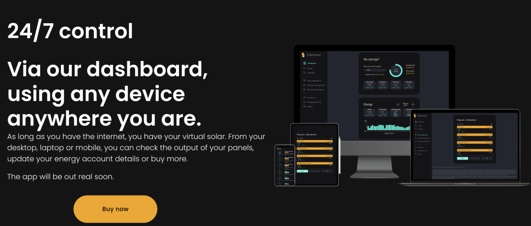 用戶買下后,可以在SolarCloud的在線平臺(tái)上實(shí)時(shí)查看發(fā)電量,電力收益會(huì)直接抵扣個(gè)人電費(fèi)賬單。搬家或者更換電力供應(yīng)商都沒關(guān)系,面板份額可以隨賬戶轉(zhuǎn)移,不會(huì)因?yàn)閾Q地方而失效。