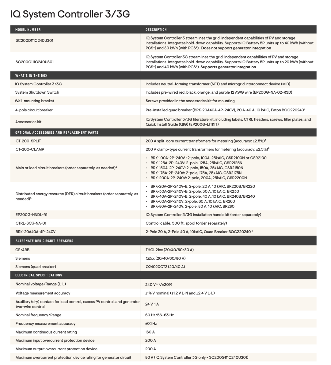 這套系統(tǒng)的控制中心是IQ System Controller 3G,它集成了自耦變壓器(提供 120/240V分相交流輸出)和發(fā)電機(jī)并網(wǎng)裝置(GID),能讓光伏、電池、發(fā)電機(jī)三方并行供電,讓系統(tǒng)具備自動切換與孤島保護(hù)功能。