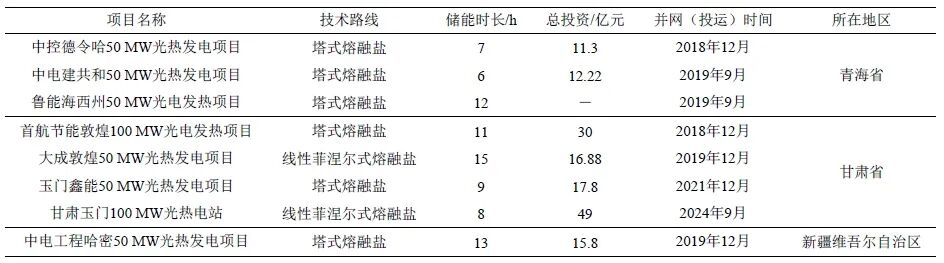 ↑ 截至2023年底我國(guó)在運(yùn)光熱發(fā)電項(xiàng)目(熔融鹽儲(chǔ)熱介質(zhì))