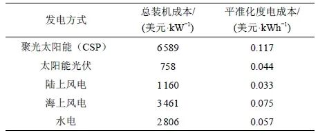 根據(jù)可勝技術(shù)在青海省德令哈市的項(xiàng)目數(shù)據(jù),模擬采用雙塔一機(jī)配置、裝機(jī)容量300兆瓦的塔式光熱電站度電成本約為0.6981元/千瓦時(shí)。與100兆瓦規(guī)模電站相比,300兆瓦規(guī)模電站的度電成本下降了17.7%。這主要得益于單機(jī)規(guī)模的擴(kuò)大帶來(lái)的汽輪機(jī)額定效率提高和廠用電率下降,從而顯著提升了電站的上網(wǎng)電量和經(jīng)濟(jì)效益。然而,與國(guó)際可再生能源署(IRENA)2023年發(fā)布的報(bào)告相比,如表3所示,光熱發(fā)電路線的總裝機(jī)成本和度電成本仍然高達(dá)6589美元/千瓦和0.117美元/千瓦時(shí),遠(yuǎn)高于同期的光伏、風(fēng)電和水電的相關(guān)成本。這主要是由于光熱電站的初始投資成本過(guò)高,尤其是大面積的聚光系統(tǒng)和吸熱儲(chǔ)熱系統(tǒng)成本占比過(guò)大,導(dǎo)致整個(gè)電站的成本居高不下。
