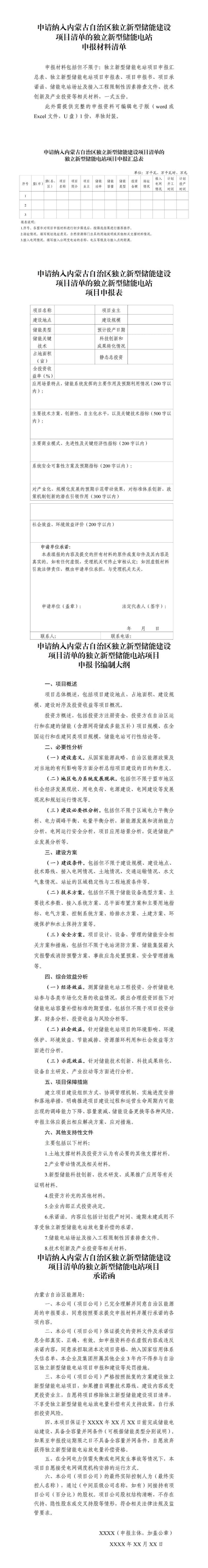 附件:申請(qǐng)納入內(nèi)蒙古自治區(qū)獨(dú)立新型儲(chǔ)能建設(shè)項(xiàng)目清單的獨(dú)立新型儲(chǔ)能電站申報(bào)材料清單