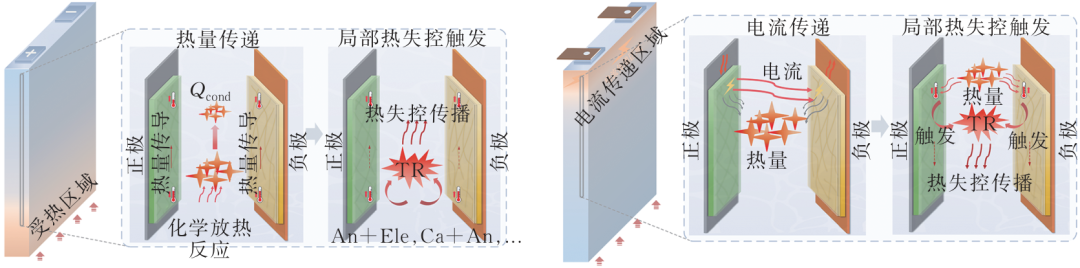 不同連接方式下電池熱失控觸發(fā)機理示意