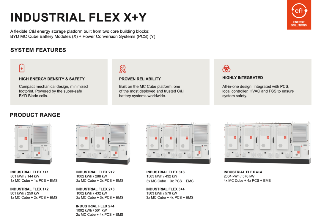 中國儲(chǔ)能網(wǎng)訊:近日,歐洲儲(chǔ)能企業(yè)EFT Energy Solutions近日正式發(fā)布其面向工商業(yè)儲(chǔ)能市場(chǎng)的全新解決方案——Industrial Flex。