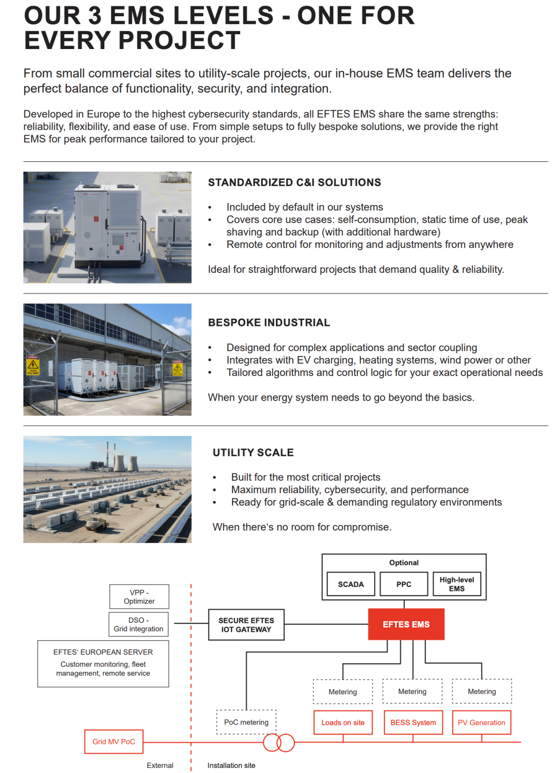 Industrial Flex 的每個(gè)單元都配備獨(dú)立EMS,可通過Modbus TCP與上位系統(tǒng)通信,兼容主流SCADA平臺(tái)與虛擬電廠系統(tǒng)。