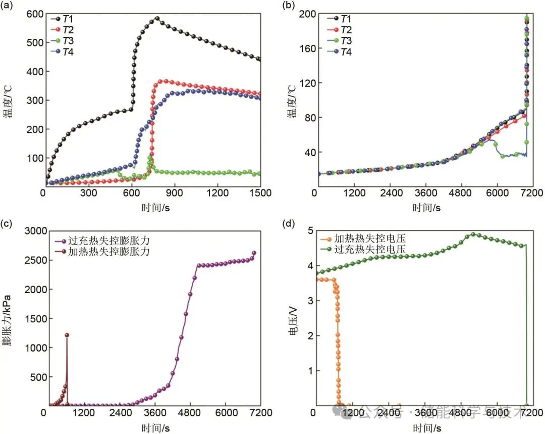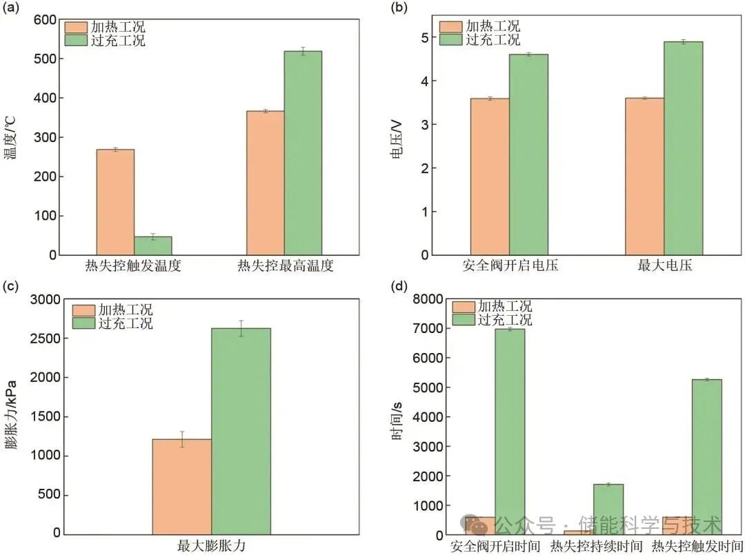 本研究系統(tǒng)性地比較分析了標(biāo)稱容量為185 Ah的大容量鈉離子電池在加熱和過充兩種不同濫用條件下的熱失控行為特性。實(shí)驗(yàn)結(jié)果表明: