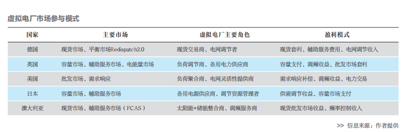 各國(guó)參與虛擬電廠情況
