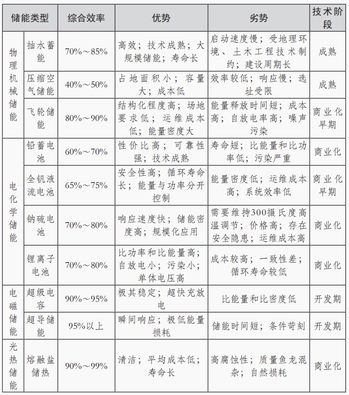不同類(lèi)型的儲(chǔ)能存在各自的優(yōu)劣勢(shì),同時(shí)也處于不同的技術(shù)發(fā)展階段。