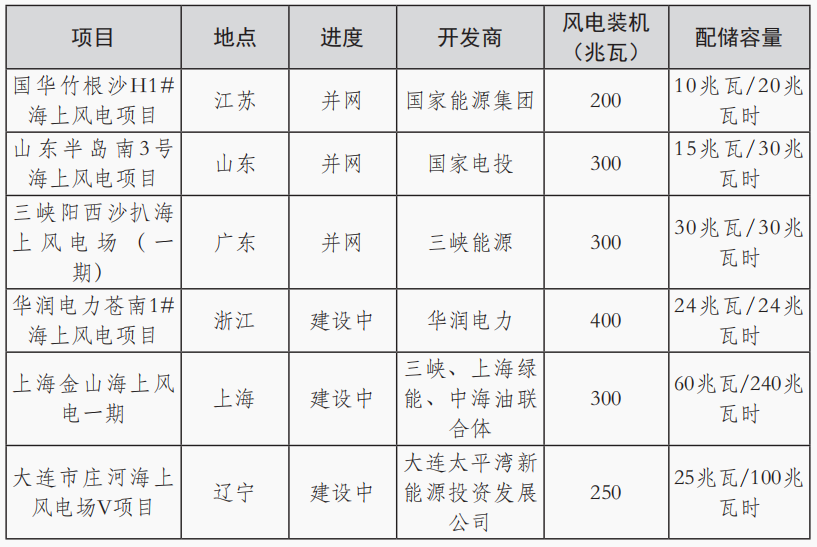 表3 國(guó)內(nèi)部分海上風(fēng)電配儲(chǔ)項(xiàng)目進(jìn)展