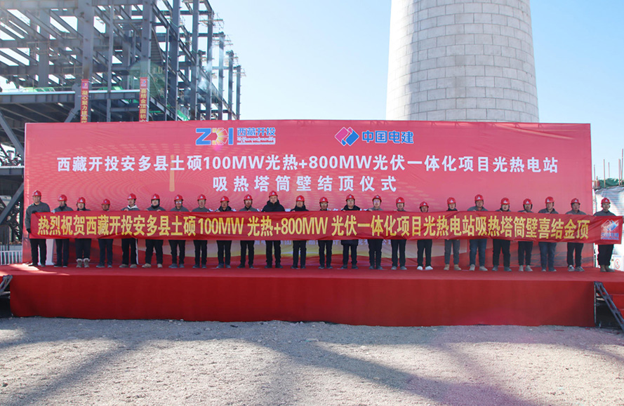 中國(guó)儲(chǔ)能網(wǎng)訊:晴空萬(wàn)里映雪域,捷報(bào)高擎慶封頂。11月15日,由山東電建一公司承建的西藏開(kāi)投安多縣土碩100MW光熱+800MW光伏一體化項(xiàng)目吸熱塔順利結(jié)頂,標(biāo)志著該項(xiàng)目建設(shè)進(jìn)程邁出堅(jiān)實(shí)一步。