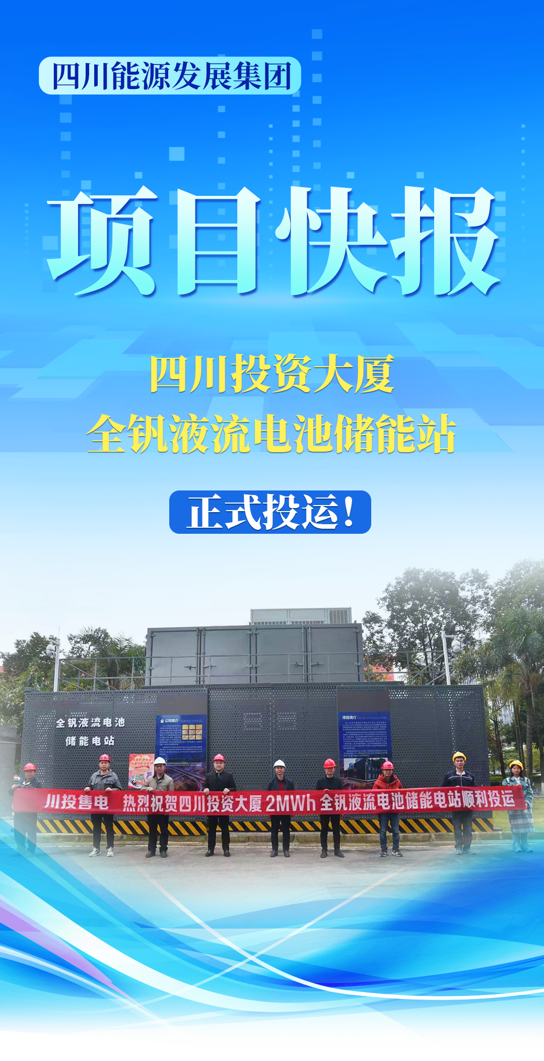 近日,四川能源發(fā)展集團(tuán)所屬川投售電投資建設(shè)的四川投資大廈全釩液流電池儲能站順利投運并正式開啟商業(yè)運營。