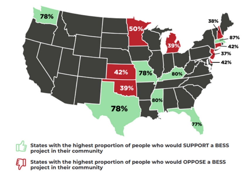 DeBellis說(shuō),“在29%反對(duì)電池儲(chǔ)能項(xiàng)目中的人中,有一半以上(52%)的人實(shí)際上根本不了解電池儲(chǔ)能系統(tǒng)知識(shí)和信息。所以,我們認(rèn)為這是信息匱乏導(dǎo)致的。他們并非真的對(duì)這項(xiàng)技術(shù)感到擔(dān)憂,只是缺乏足夠的培訓(xùn)教育。”
