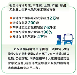氫能在交通領(lǐng)域的應(yīng)用是氫能大規(guī)模普及使用的突破口。2020年9月,財(cái)政部、工業(yè)和信息化部、科技部、國(guó)家發(fā)展改革委、國(guó)家能源局等五部門(mén)聯(lián)合發(fā)布《關(guān)于開(kāi)展燃料電池汽車示范應(yīng)用的通知》,明確燃料電池汽車示范城市群要完善燃料電池汽車和氫能相關(guān)技術(shù)指標(biāo)、測(cè)試標(biāo)準(zhǔn),為燃料電池汽車示范應(yīng)用提供經(jīng)濟(jì)、安全穩(wěn)定的氫源保障,探索發(fā)展綠氫,有效降低車用氫能成本等。2021年8月,北京、上海和廣東報(bào)送的城市群?jiǎn)?dòng)實(shí)施燃料電池汽車示范應(yīng)用。2021年12月,鄭州和河北燃料電池汽車示范城市群相繼獲批,全國(guó)形成了“3+2”燃料電池汽車示范格局,推動(dòng)燃料電池汽車示范應(yīng)用發(fā)展。