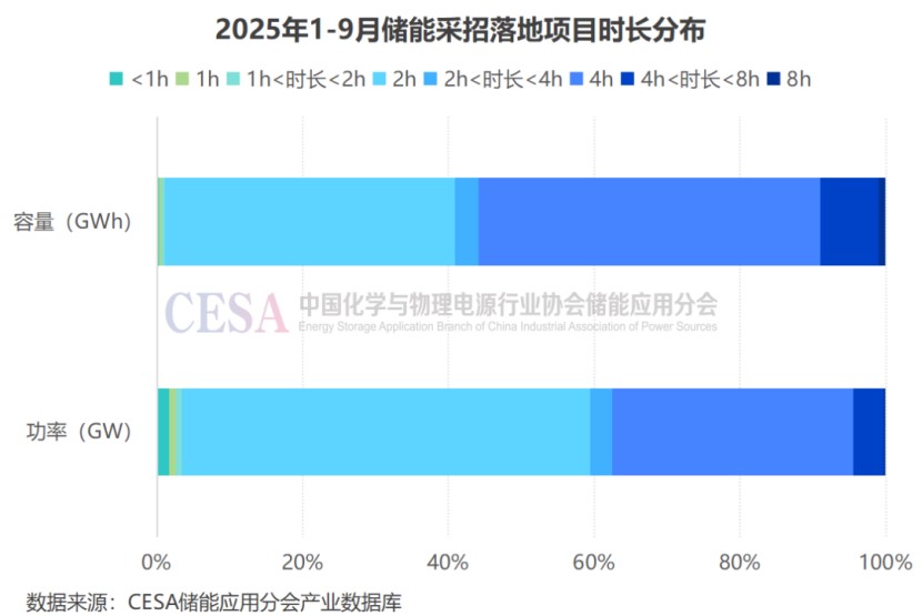 據(jù)CESA儲能應用分會產(chǎn)業(yè)數(shù)據(jù)庫不完全統(tǒng)計,2025年1-9月,國內(nèi)73.2GW/209.76GWh采招落地的儲能項目中,明確時長的儲能項目為71.9GW/202.4GWh。
