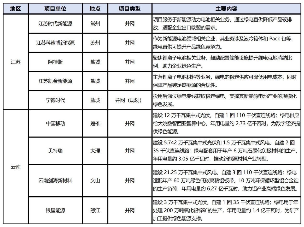 不過,早在今年2月,江蘇省發(fā)展改革委印發(fā)《關于創(chuàng)新開展綠電直連供電試點項目建設工作的通知》,確定了首批5個綠電直連供電試點項目。兩批省級層面公布綠電直連項目項目分別發(fā)布于“650號文”前后,從中也能看出未來綠電直連項目建設的一些趨勢。