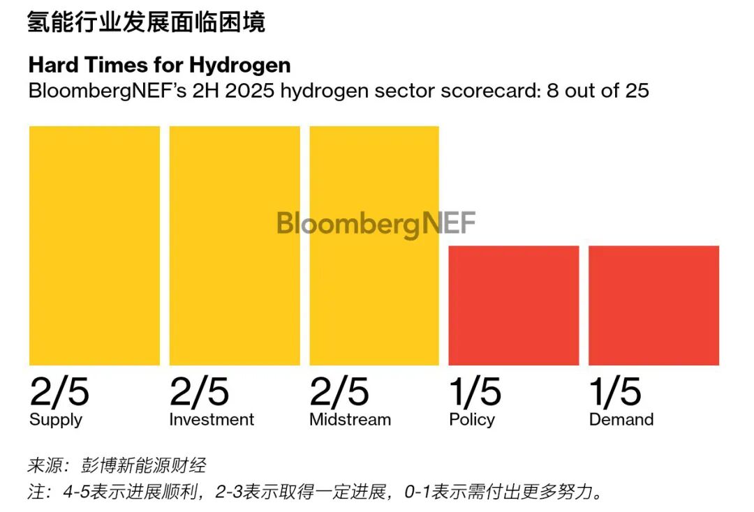 2025年下半年清潔氫行業(yè)的彭博新能源財(cái)經(jīng)記分卡得分
