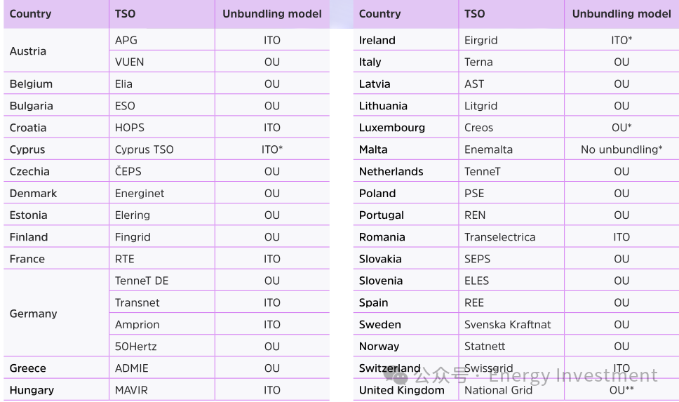 獨立輸電系統(tǒng)運營商(ITO):能源供應公司仍可能擁有和運營燃氣或電力網絡,但必須通過子公司進行。所有重要決策必須獨立于母公司進行。
