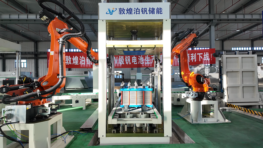 中國(guó)儲(chǔ)能網(wǎng)訊:12月1日上午,敦煌光電園區(qū)內(nèi)的敦煌泊釩儲(chǔ)能科技有限公司舉行釩電池電堆產(chǎn)品下線儀式,標(biāo)志著該GW級(jí)全釩液流電池生產(chǎn)項(xiàng)目正式實(shí)現(xiàn)核心產(chǎn)品量產(chǎn)。