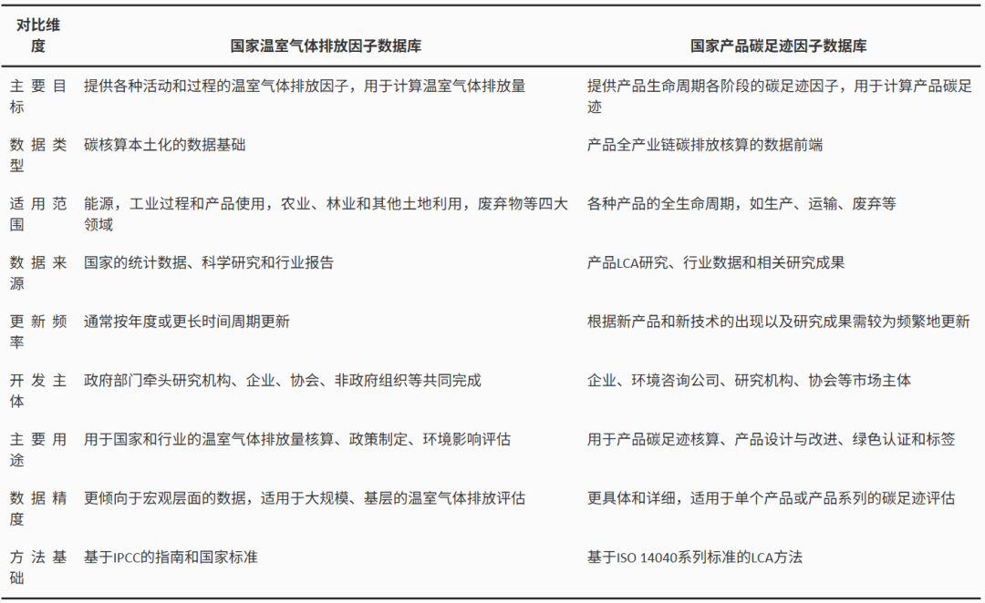 表1 國家溫室氣體排放因子數(shù)據(jù)庫和產(chǎn)品碳足跡因子數(shù)據(jù)庫的關(guān)系分析