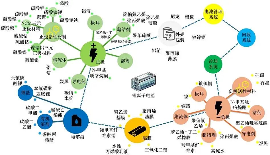 注:考慮到鋰電池生產(chǎn)的多樣性與復(fù)雜性,本圖僅示意主要材料組成。