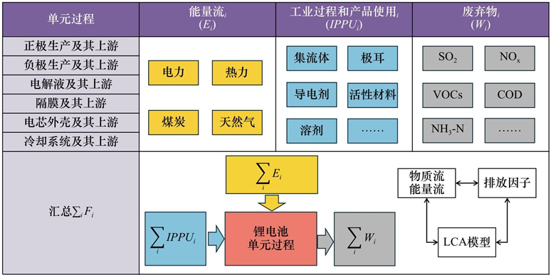圖4 支撐鋰電池碳足跡核算的物質(zhì)流與能量流分析示意