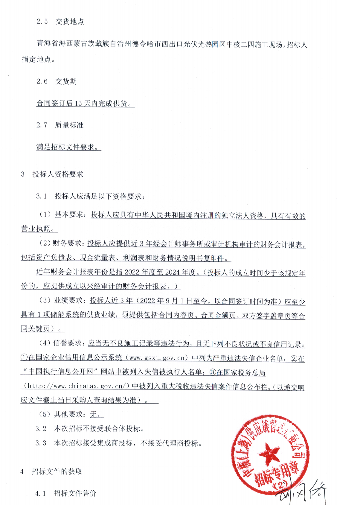 項目要求投標(biāo)人近3年(2022年9月1日至今,以合同簽訂時間為準(zhǔn))應(yīng)至少具有1項儲能系統(tǒng)的供貨業(yè)績。