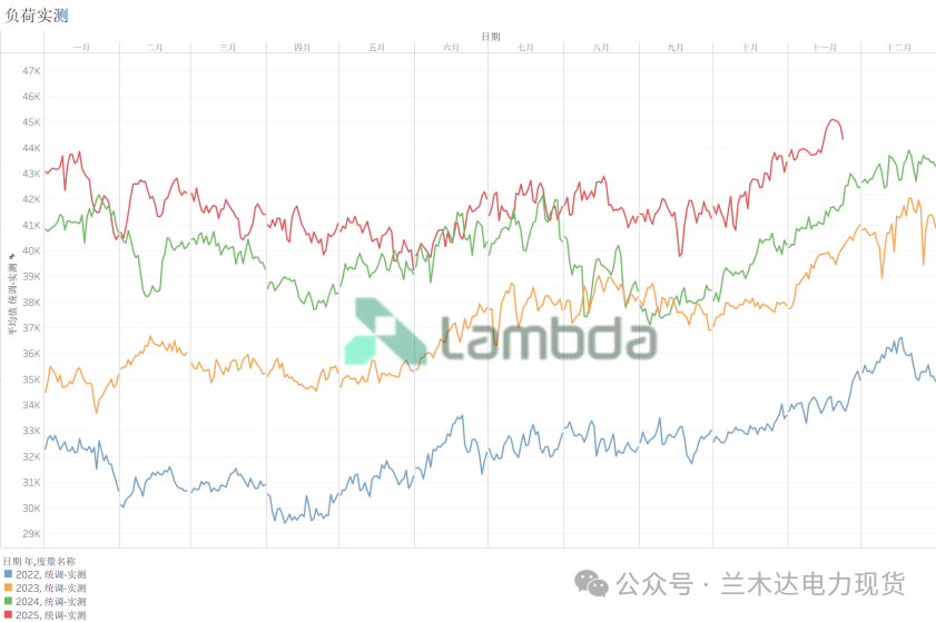 與快速上漲的供給相反的是,2022-2025年,蒙西用電需求整體呈上漲趨勢,但增速顯著放緩。
