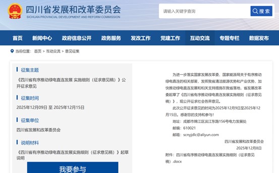 中國儲能網(wǎng)訊:12月8日,四川發(fā)改委發(fā)布《四川省有序推動綠電直連發(fā)展實施細(xì)則(征求意見稿)》。