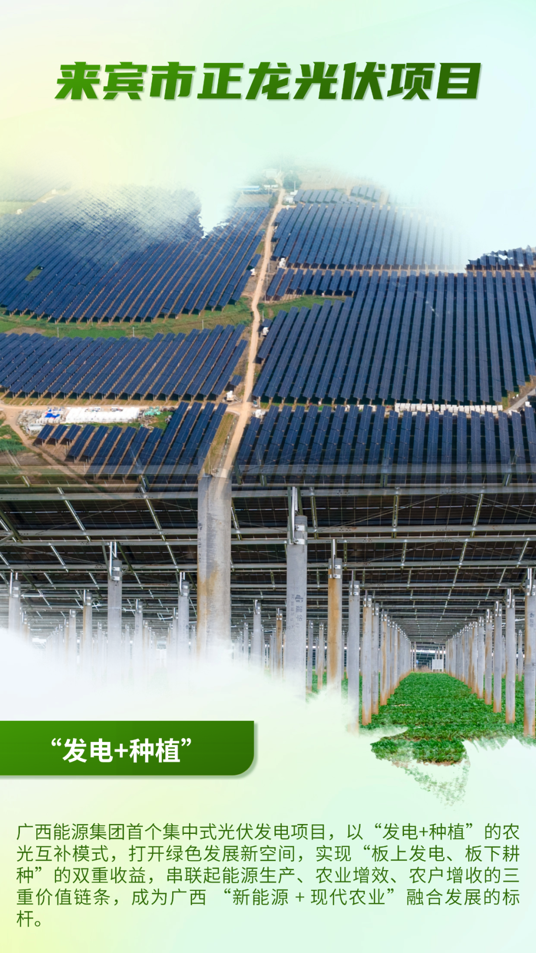 目前,廣西能源集團光伏產(chǎn)業(yè)已實現(xiàn)南寧、柳州、來賓、賀州、梧州、北海等區(qū)內(nèi)重點區(qū)域的廣泛布局,同時打造了“光伏+農(nóng)業(yè)”“光伏+工業(yè)園區(qū)”“光伏+儲能”“光伏+鄉(xiāng)村振興”等多元融合應(yīng)用場景,形成了多區(qū)域覆蓋、多場景落地的新能源發(fā)展格局。