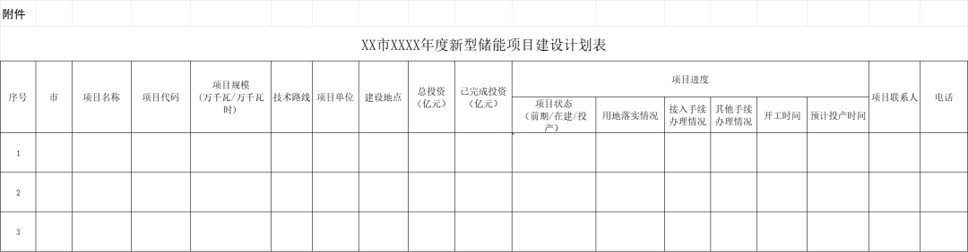 附件:XX市XXXX年度新型儲(chǔ)能項(xiàng)目建設(shè)計(jì)劃表