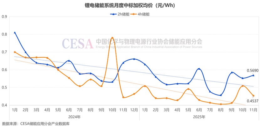 此外,值得一提的是,11月楚能新能源以3.3707億元的報(bào)價(jià)中標(biāo)了中電儲(chǔ)能呼和浩特市賽罕300MW/1200MWh獨(dú)立儲(chǔ)能電站項(xiàng)目儲(chǔ)能系統(tǒng)電芯,折合單價(jià)0.2809元/Wh。