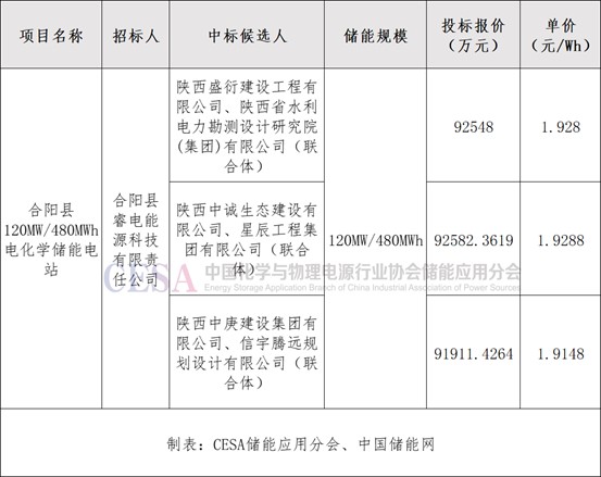 表 合陽縣120MW/480MWh全釩液流電池儲(chǔ)能電站EPC入圍報(bào)價(jià)