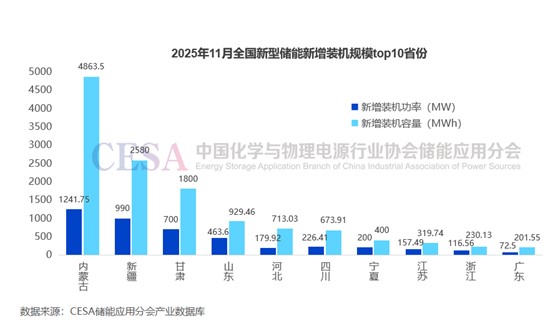 從各省份新增裝機(jī)規(guī)模來(lái)看,11月共有21省份新增投運(yùn)新型儲(chǔ)能項(xiàng)目,多個(gè)省份新增裝機(jī)規(guī)模達(dá)到GWh級(jí)別。