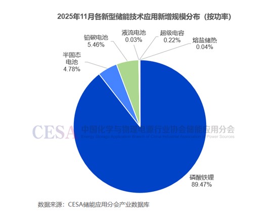 儲(chǔ)能技術(shù)路線方面,11月新增投運(yùn)儲(chǔ)能項(xiàng)目中,磷酸鐵鋰儲(chǔ)能技術(shù)并網(wǎng)總功率占比達(dá)89.47%,繼續(xù)保持主導(dǎo)地位。