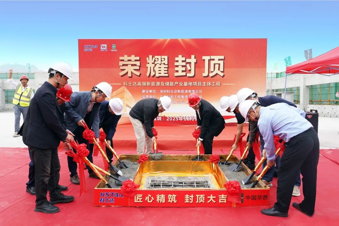 中國(guó)儲(chǔ)能網(wǎng)訊:2025年12月10日,科士達(dá)(股票代碼:002518)高端新能源及儲(chǔ)能產(chǎn)業(yè)基地項(xiàng)目封頂儀式在深圳光明區(qū)隆重舉行??剖窟_(dá)董事長(zhǎng)劉程宇先生、副總經(jīng)理胡巍先生、總經(jīng)理助理?xiàng)罱芟壬⒖偙O(jiān)卓祖輝先生等公司高管共同出席儀式,并攜手完成最后一方混凝土澆筑。至此,這座承載科士達(dá)智慧能源戰(zhàn)略愿景的基地主體建設(shè)圓滿完成,標(biāo)志著公司在新能源領(lǐng)域的布局邁入全新階段。