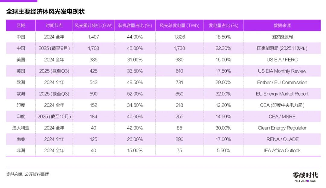 儲能今后不再是錦上添花的調節(jié)手段,而是填補物理缺口、防止電網崩潰的關鍵技術。這已不僅是經濟賬,更是為了系統(tǒng)安全必須支付的成本。這種物理壓力不僅存在于中國,而是全球主要經濟體共同面臨的挑戰(zhàn)。從全球范圍來看,風光發(fā)電的滲透率已經達到了必須依靠儲能來維持系統(tǒng)穩(wěn)定的臨界點。