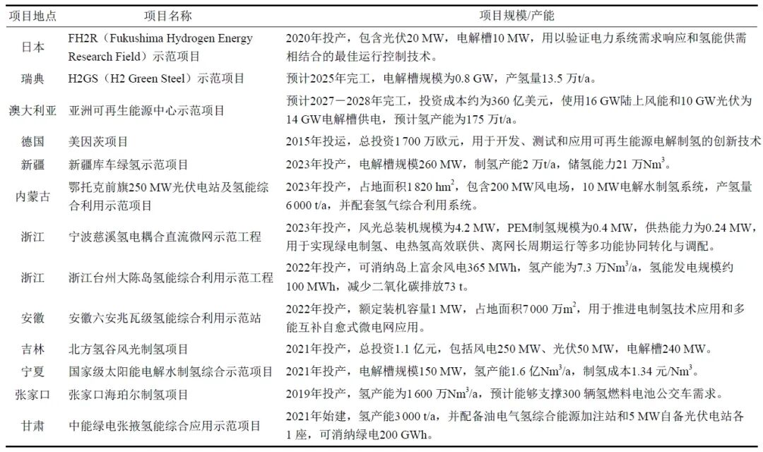 為準(zhǔn)確把握電-氫產(chǎn)業(yè)的發(fā)展趨勢(shì),下表列舉了國(guó)內(nèi)外典型電氫-項(xiàng)目的建設(shè)現(xiàn)狀。
