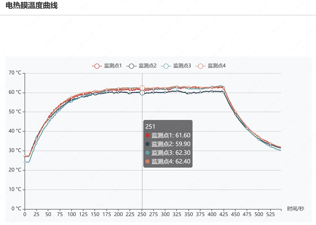 0.5秒/次高頻采集,多溫區(qū)同步監(jiān)測對(duì)比,免費(fèi) 輸出發(fā)熱片溫度-時(shí)間曲線,為發(fā)熱產(chǎn)品設(shè)計(jì)提供 精確數(shù)據(jù)支撐,助力產(chǎn)品安全驗(yàn)證。