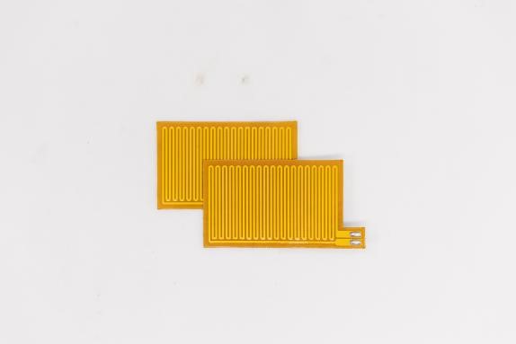 上下絕緣膜、發(fā)熱線路經(jīng)高溫高壓熱合而成電加熱片,其發(fā)熱線路是發(fā)熱合金片蝕刻形成的,外絕緣膜通常是聚酰亞胺薄膜(PI膜)或者耐高溫硅膠片。