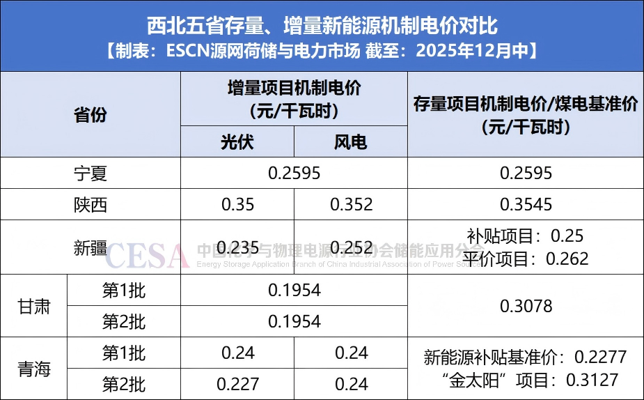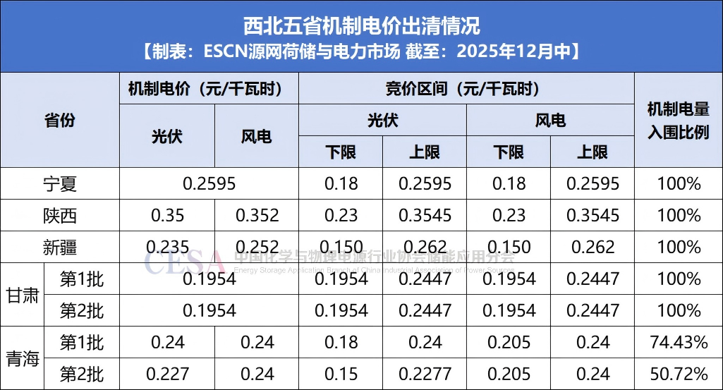 截至12月中旬,西北五省中,寧夏、陜西、新疆三省公布了第一批競價結(jié)果,即2025年下半年并網(wǎng)的新能源項(xiàng)目;甘肅和青海分別公布了兩批競價結(jié)果,包含2025年下半年并網(wǎng)和2026年并網(wǎng)的新能源項(xiàng)目。