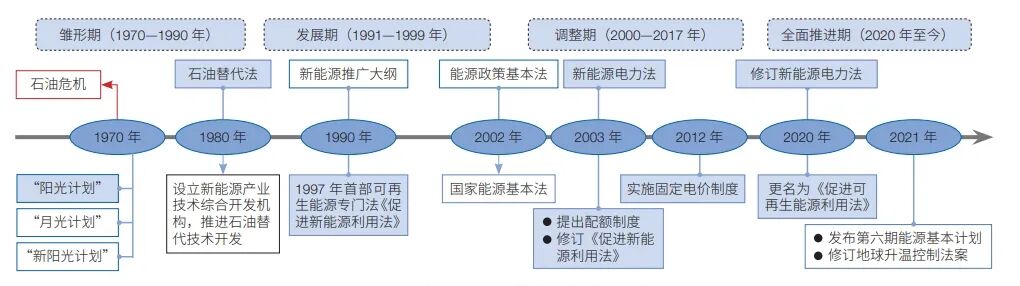 圖4 1970年以來(lái)日本可再生能源相關(guān)立法發(fā)展歷程