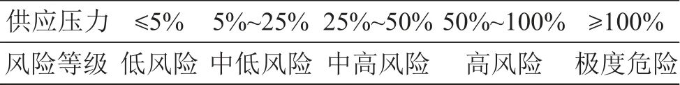 評估風(fēng)電機組、光伏組件中關(guān)鍵金屬的供應(yīng)壓力,有助于把握我國風(fēng)電、光伏發(fā)電等細分行業(yè)面臨的金屬供應(yīng)態(tài)勢。供應(yīng)壓力可基于儲量或產(chǎn)量,本研究采用國內(nèi)產(chǎn)量,相關(guān)公式引自文獻,相應(yīng)等級劃分如表1所示。