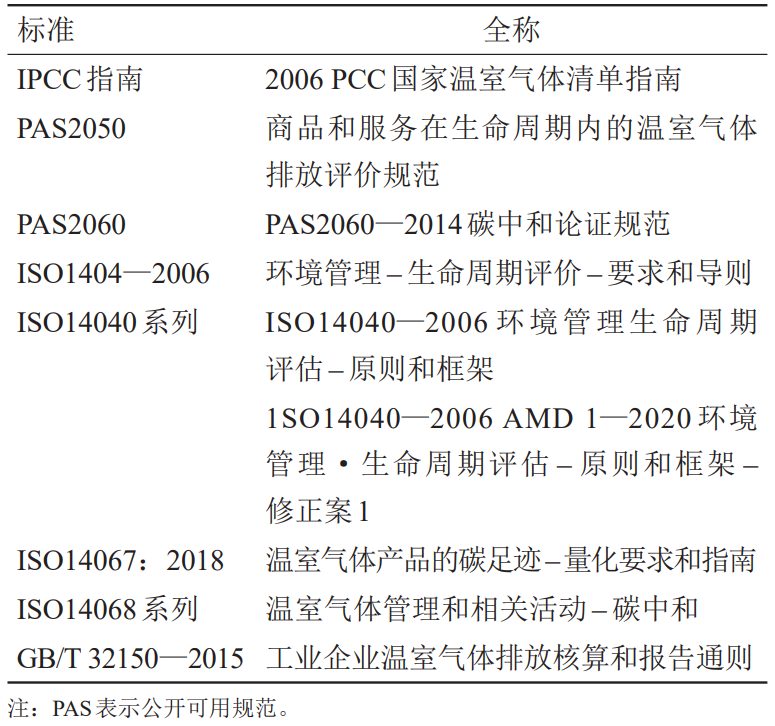 表2 碳排放核算與產(chǎn)品碳足跡評(píng)價(jià)的主要標(biāo)準(zhǔn)