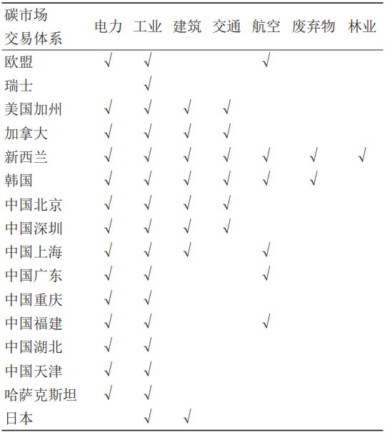 表5 碳排放市場(chǎng)交易體系所覆蓋行業(yè)