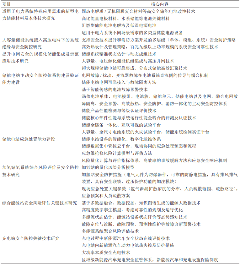 表3 中長期新能源應(yīng)用安全風(fēng)險(xiǎn)防控工程科技項(xiàng)目