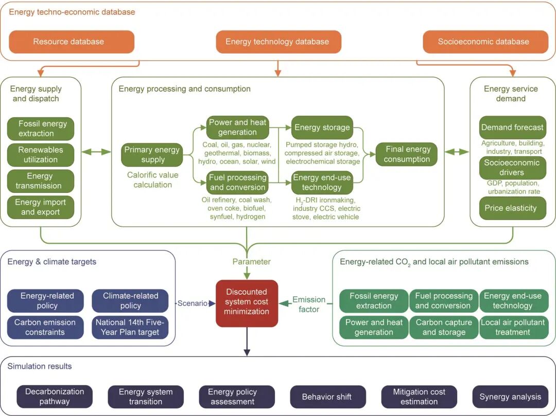近幾十年來,由溫室氣體排放增加引起的氣候變化問題日益突出,世界各國正在合作應(yīng)對(duì)這一全球挑戰(zhàn)。《巴黎協(xié)定》要求各國將全球平均氣溫升幅限制在低于工業(yè)化前水平2 ℃以內(nèi),并努力限制在1.5 ℃以內(nèi)。此外,各國還承諾盡快實(shí)現(xiàn)全球溫室氣體排放達(dá)峰,并在21世紀(jì)下半葉實(shí)現(xiàn)溫室氣體人為排放和移除之間的平衡。目前,130多個(gè)國家已經(jīng)宣布了他們的凈零排放或者碳中和目標(biāo)。目前,大部分的二氧化碳排放來自于能源系統(tǒng)。因此,能源系統(tǒng)脫碳路徑很大程度上決定了中國的脫碳路徑。中國目前是世界上最大的碳排放國和能源消費(fèi)國,實(shí)現(xiàn)碳中和的能源轉(zhuǎn)型路徑備受世界的關(guān)注。